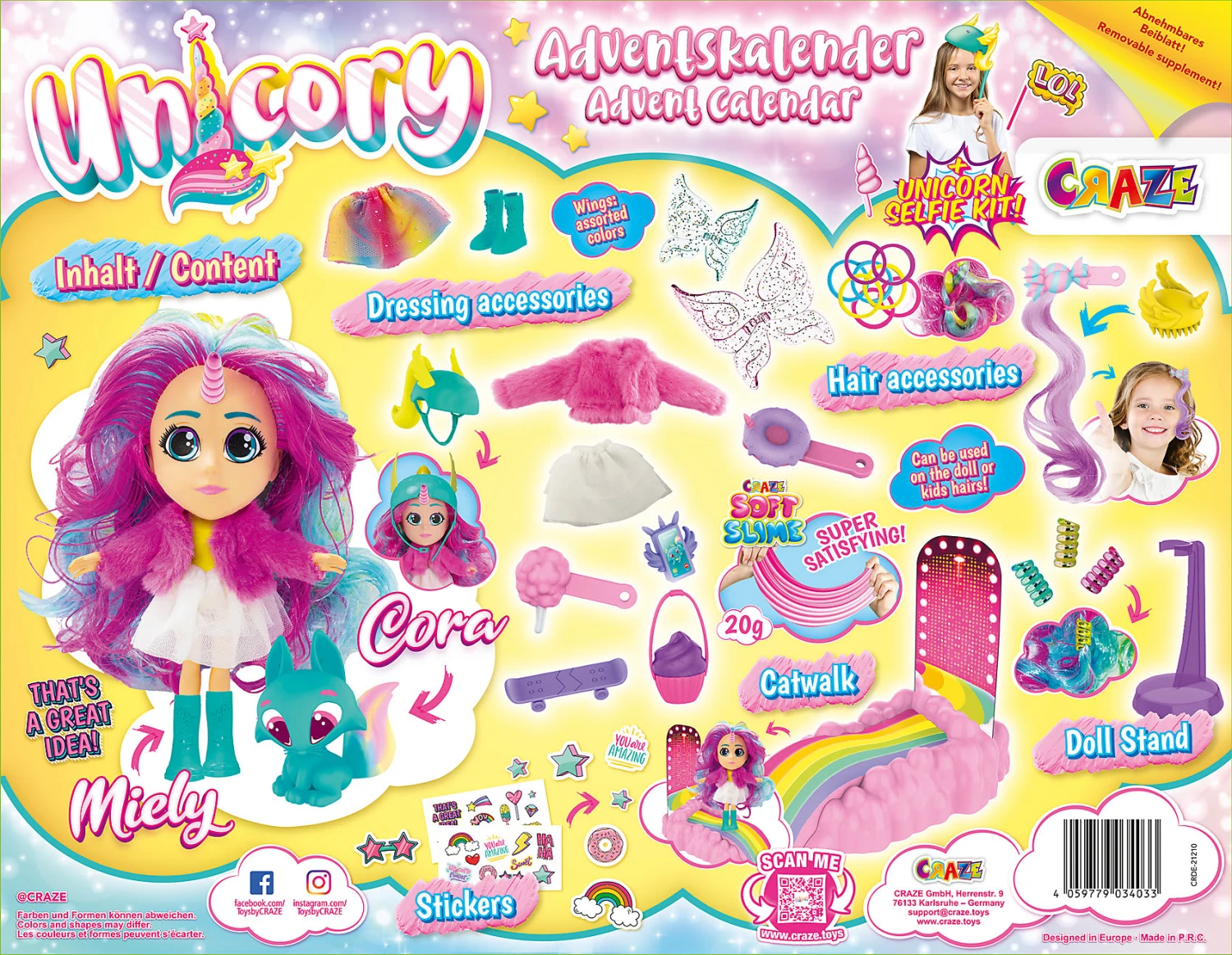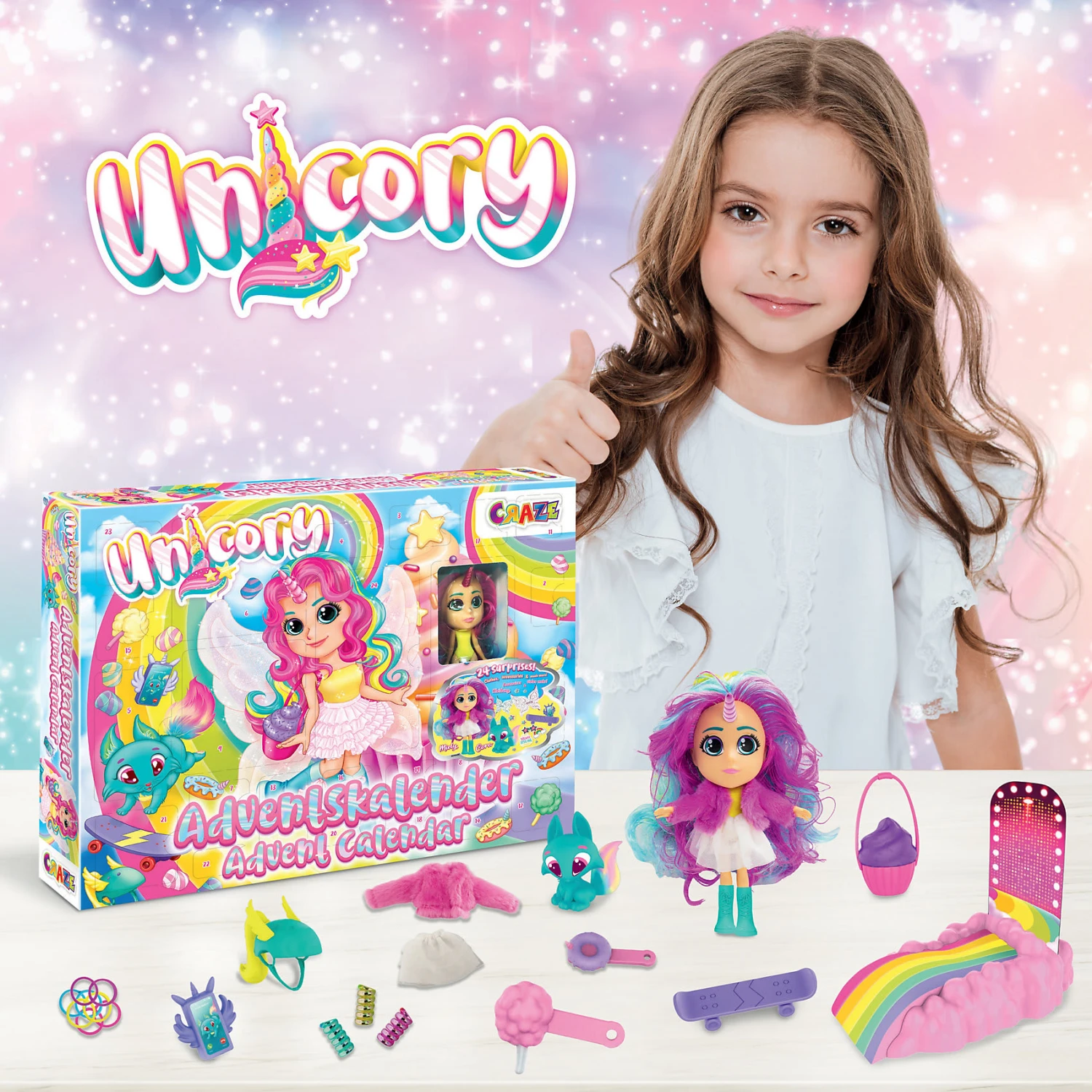 Der zauberhafte Adventskalender „Unicory“ aus dem Hause CRAZE versüßt Kindern mit tollen Überraschungen das Warten auf Weihnachten! Hinter den Türchen verstecken sich eine ganz besondere Puppe und jede Menge Zubehör. Die stylische Puppe ist Fee und Einhorn zugleich und sorgt dadurch für große Begeisterung! Jeden Tag entdeckt man neue Kleidung, Accessoires und mehr für die Einhornfee, sodass der Spielspaß nie ein Ende nimmt.