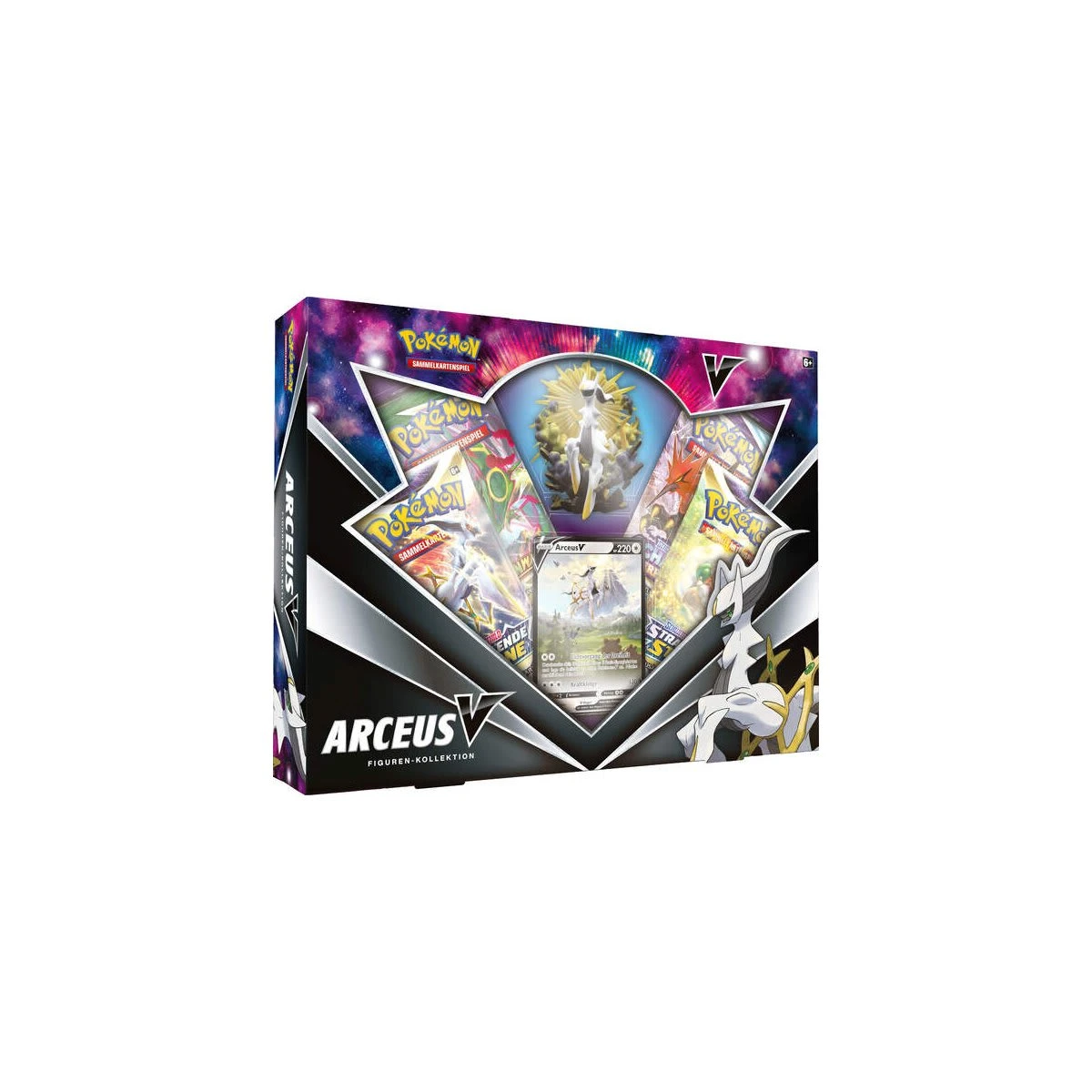 Das majestätische Alpha-Pokémon gibt deinem Team mehr Power – und eine fantastische Figur für deine Sammlung! In diesem Set erhältst du eine spielbare, holografische Karte mit Arceus V und eine wunderschön detaillierte Figur von Arceus, die dich im Kampf inspirieren wird.