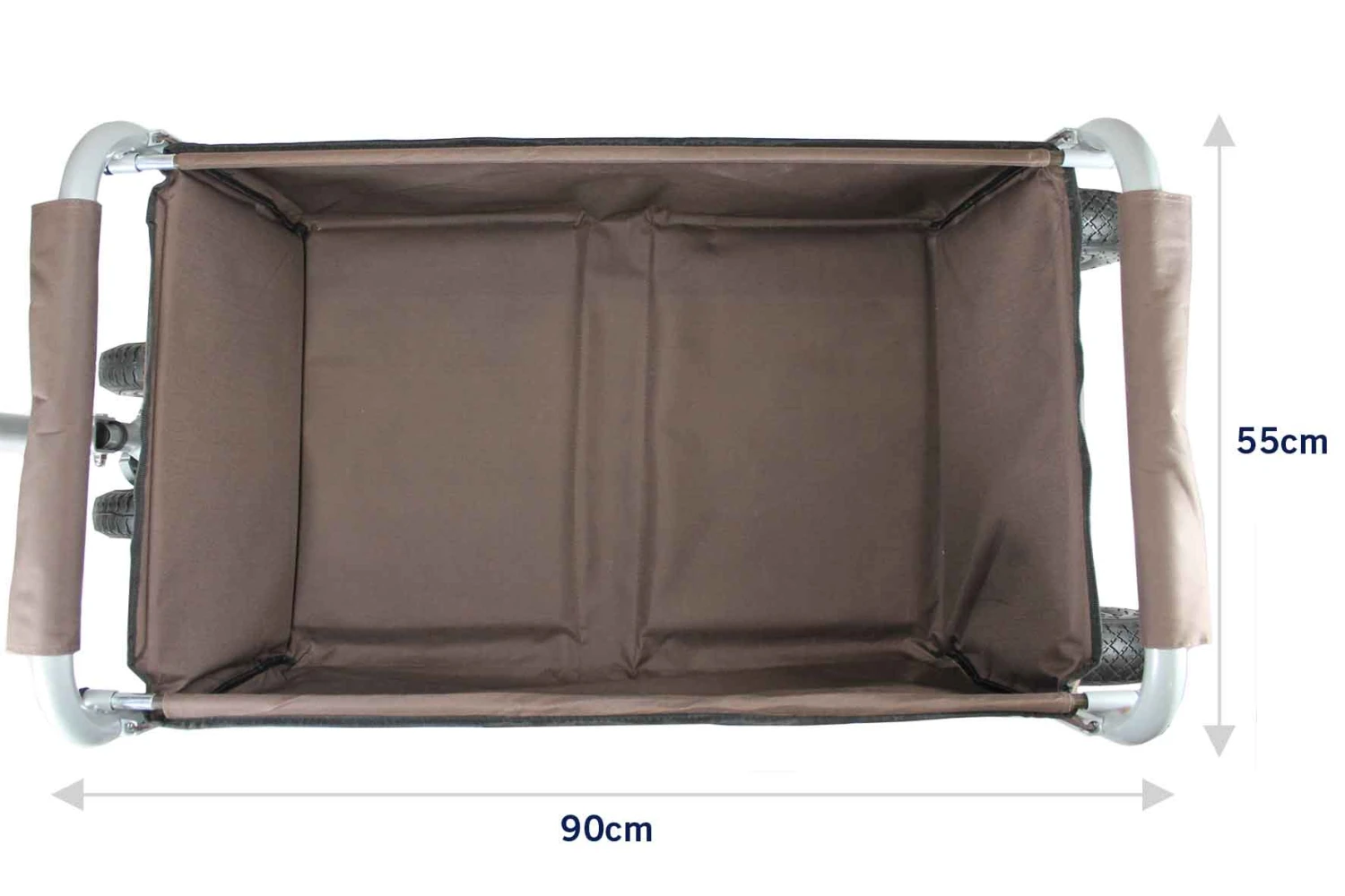 Der Bollerwagen besteht aus einem stabilen Metallrahmen mit Pulverlackbeschichtung. Der niedrige Schwerpunkt, die abgerundeten Kanten und die selbstarretierenden Scharniere bieten eine sichere Fahrt. Sowohl der hochwertige Textilkörper aus strapazierbarem Rucksackstoff, der Metallrahmen als auch die Fiberglasstangen sorgen für eine gute Seitenstabilität.