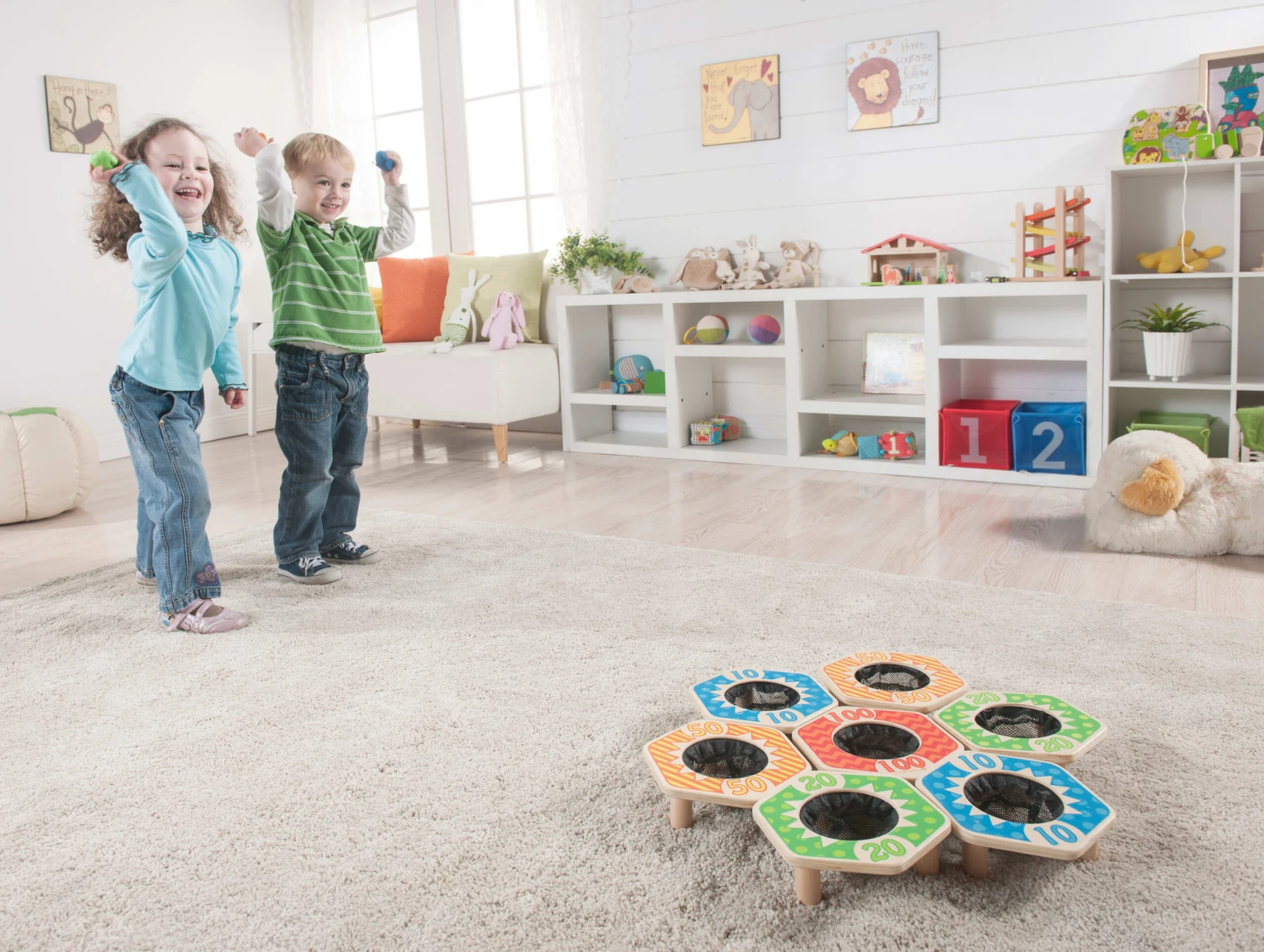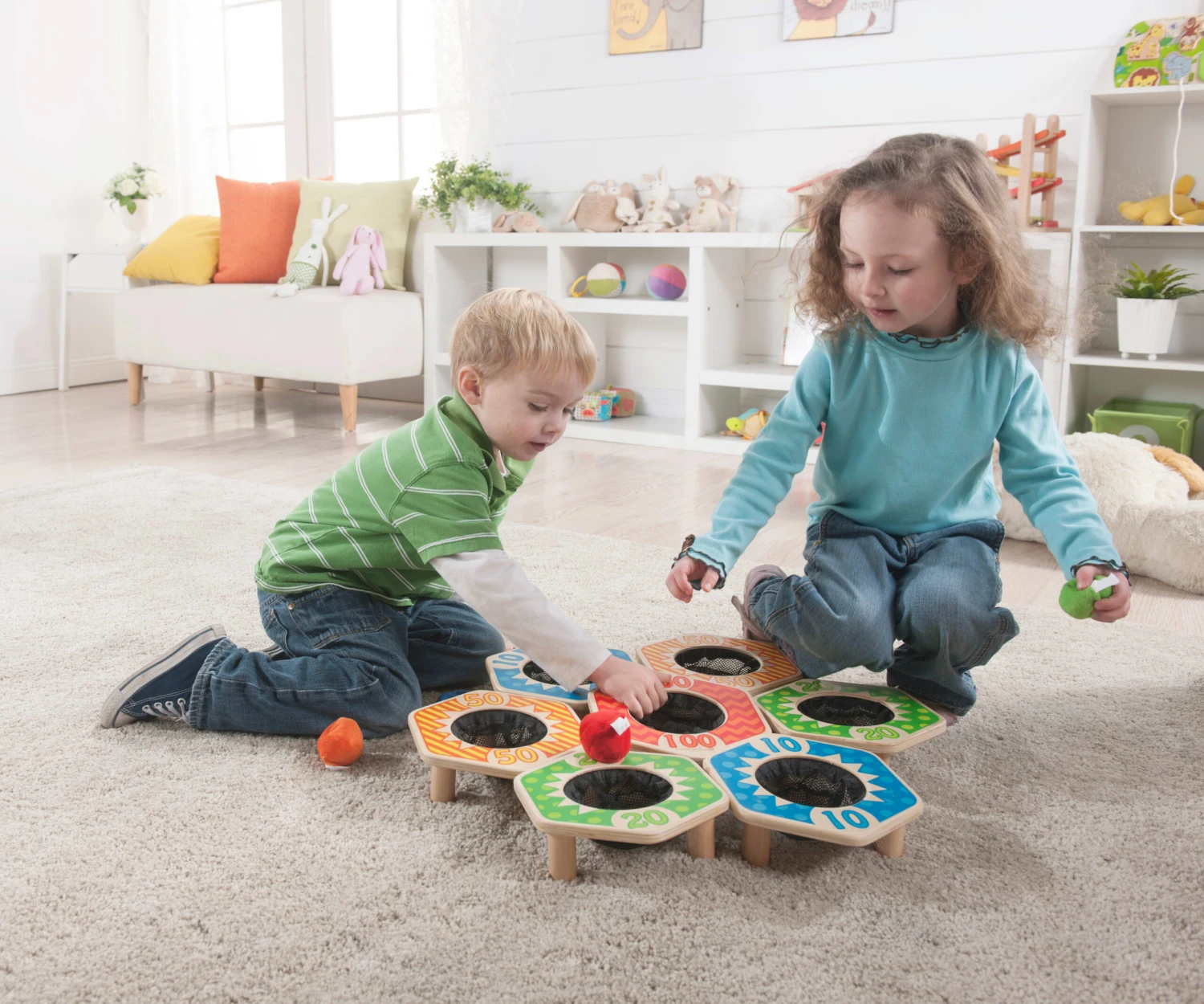 Für jeden Ball, der in einem der Netze landet, wird dem Spieler die bestimmte Punktzahl angerechnet. Im Set sind vier verschiedenfarbige Bälle enthalten. Der Familienspaß ist garantiert! Mit dem Wurfspiel trainieren die Kinder ihre Geschicklichkeit, ihre Motorik und ihre Hand-Augen-Koordination.