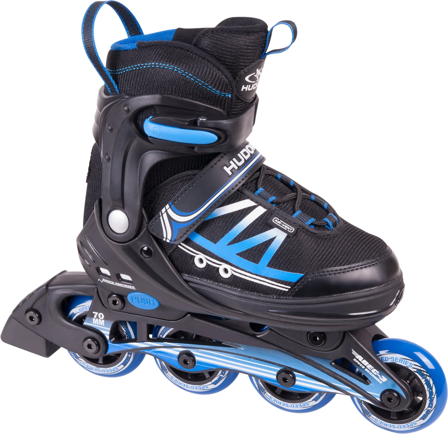 Rasante Fahrten mit den Inlinern RX-21 von HUDORA. Schnell und funktional lassen sich die Inliner mit einem einfachen Druck-Knopf in 4 verschiedene Größen einstellen. Bequem und trotzdem robust sind die Inliner durch die schlagfeste Nylon Schale außen und die Softboots innen. Die Speed-Rollen sorgen für ein sicheres Rollen bei höheren Geschwindigkeiten. Für ein angenehmes Fahrgefühl sorgen die ABEC 3 Kugellager.