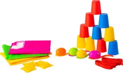 Wer ist am schnellsten beim wilden Sackhüpfen? Wer transportiert die brüchigen Eier beim Eierlauf am sichersten von A nach B? Mit diesem umfassenden myToys „Kinderparty-Set“ wird jede Party, ob drinnen oder draußen, zum coolen Spielespaß! Die bunten Dosen werden gestapelt und mit den kleinen Säckchen muss man sie umwerfen. Wie viele werden fallen? Und wer hat den Spiele-Marathon am Ende gewonnen? Das robuste Material sorgt für langanhaltenden Spielespaß und wird viel Schwung in jede Kinderfeier bringen.