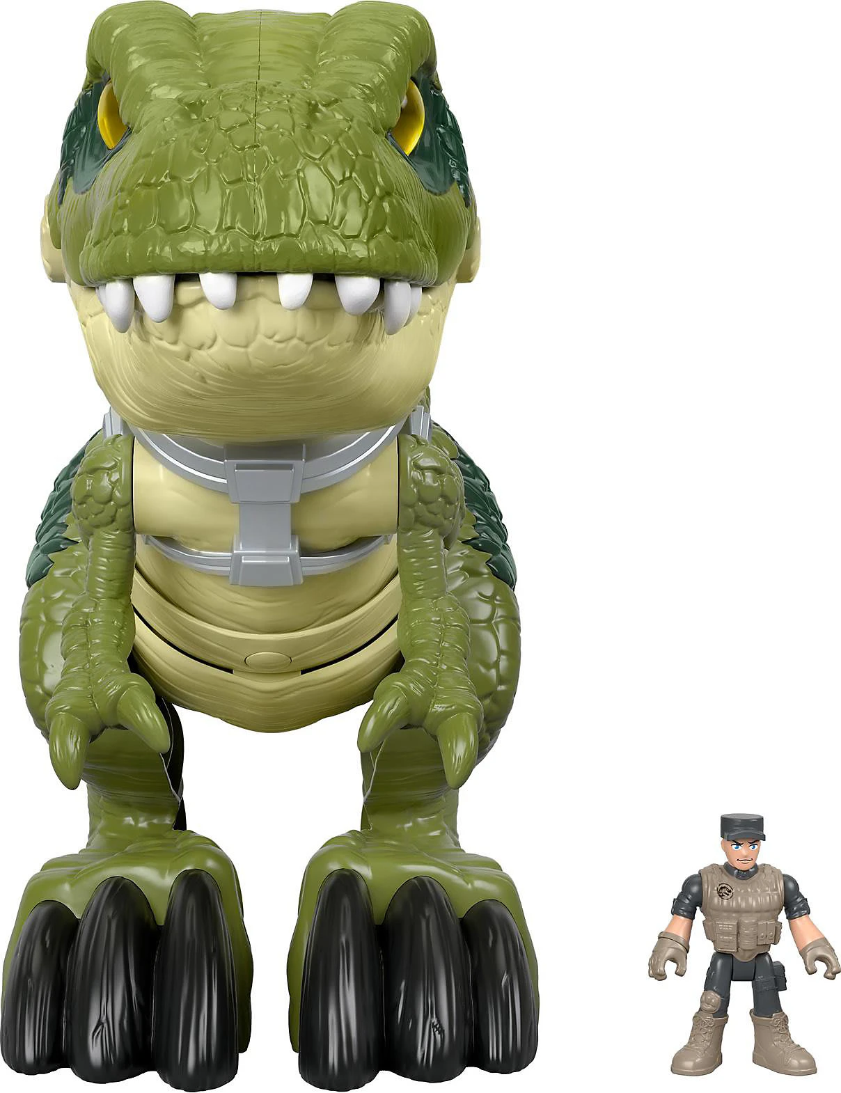 Kleine Dinosaurier-Fans können sich auf ganz viel Spielspaß freuen! Schließlich können Kinder mit diesem Fisher-Price Imaginext „Hungriger T-Rex“ Figurenset ihrer Fantasie freien Lauf lassen und geniale Abenteuer aus Jurassic World nachspielen. Besonders cool: Kinder können den Dinosaurier am Griff festhalten, während er nach vorne schnellt, zubeißt und seine menschliche Beute im Ganzen hinunterschluckt! Aber keine Sorge, der Spaß hört an dieser Stelle nicht auf, denn die Figur kann über die Tür am Rücken des Dinosauriers befreit werden, damit die Action von vorne losgehen kann!
