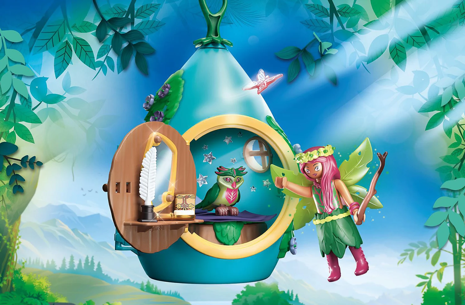 Die Feen leben in einer geheimnisvollen und magischen Welt tief in den Wäldern. Mit diesem bezaubernden Spieleset PLAYMOBIL ® Tropfenhäuschen (70804) kommt ein gemütliches Feenhäuschen in die Kinderzimmer. In diesen niedlichen Tropfen wohnen die kleinen Feen. Das Häuschen hat einen Haken und kann überall im Kinderzimmer, oder auch am Gemeinschaftsbaum der Feen aufgehängt werden. Glitzernde Sticker und das integrierte Geheimfach machen das kleine hängende Tröpfchen noch magischer. Spielespaß für alle Feen-Fans mit viel Zubehör und einem aufklappbaren Tropfenhäuschen mit Fenster.