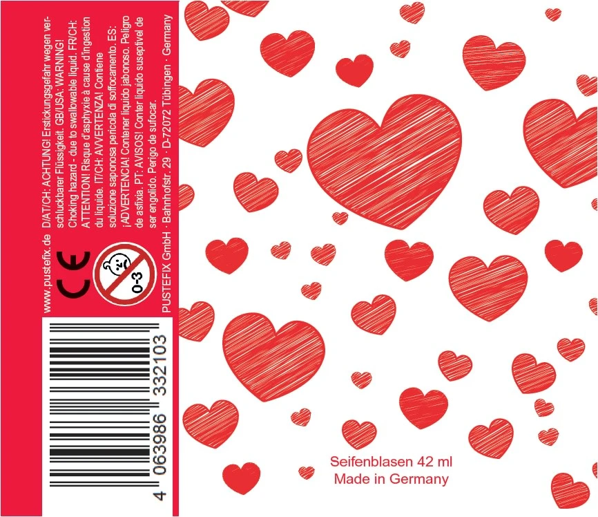 Die Vatentinstagsedition mit den Herzen, von PUSTEFIX ist die perfekte Möglichkeit deinem Schwarm endlich deine Liebe zu gestehen. PUSTEFIX Klassik mit 42 ml PUSTEFIX Flüssigkeit im Valentinstag Herzen Design mit Deckelfarbe rot