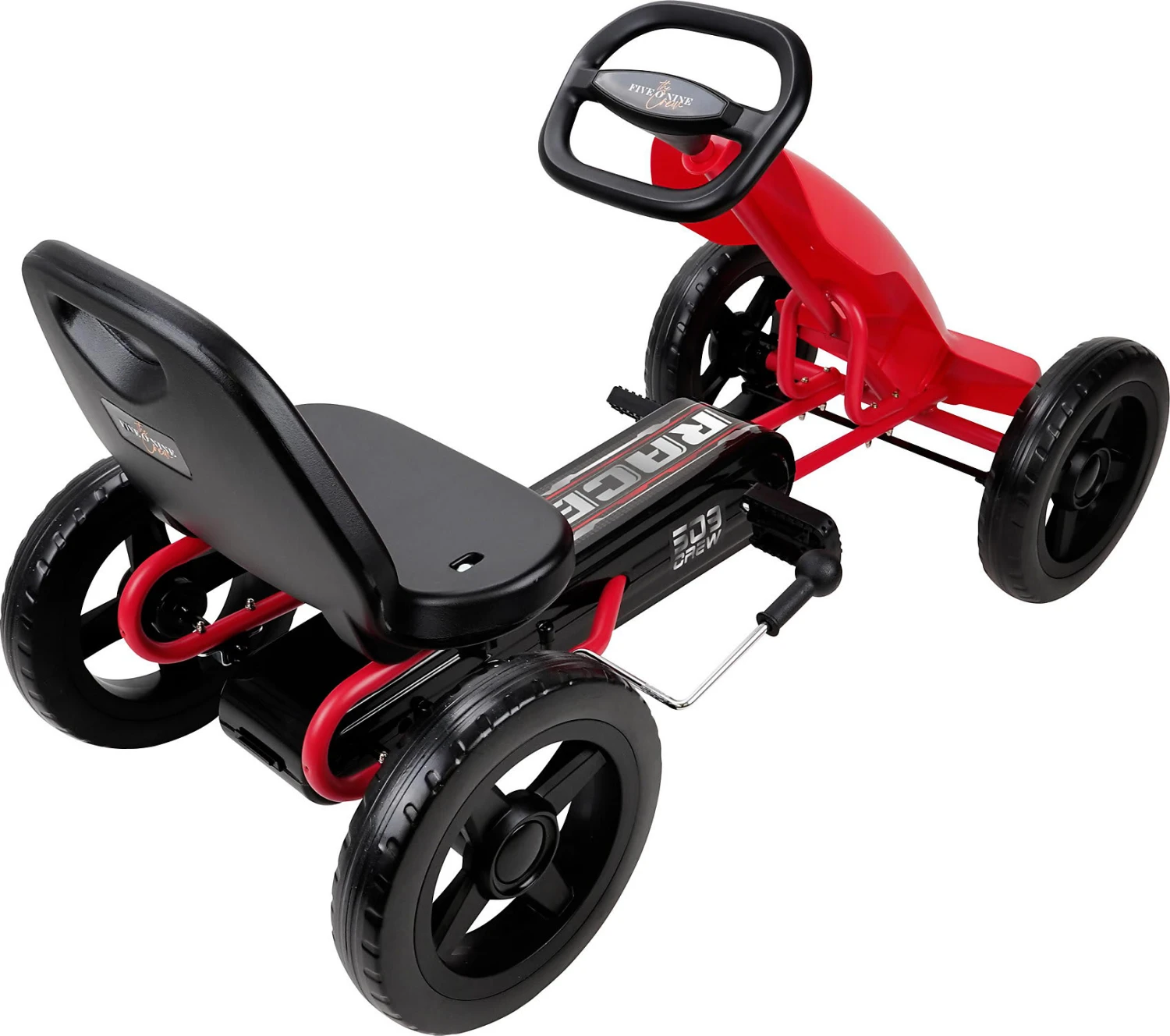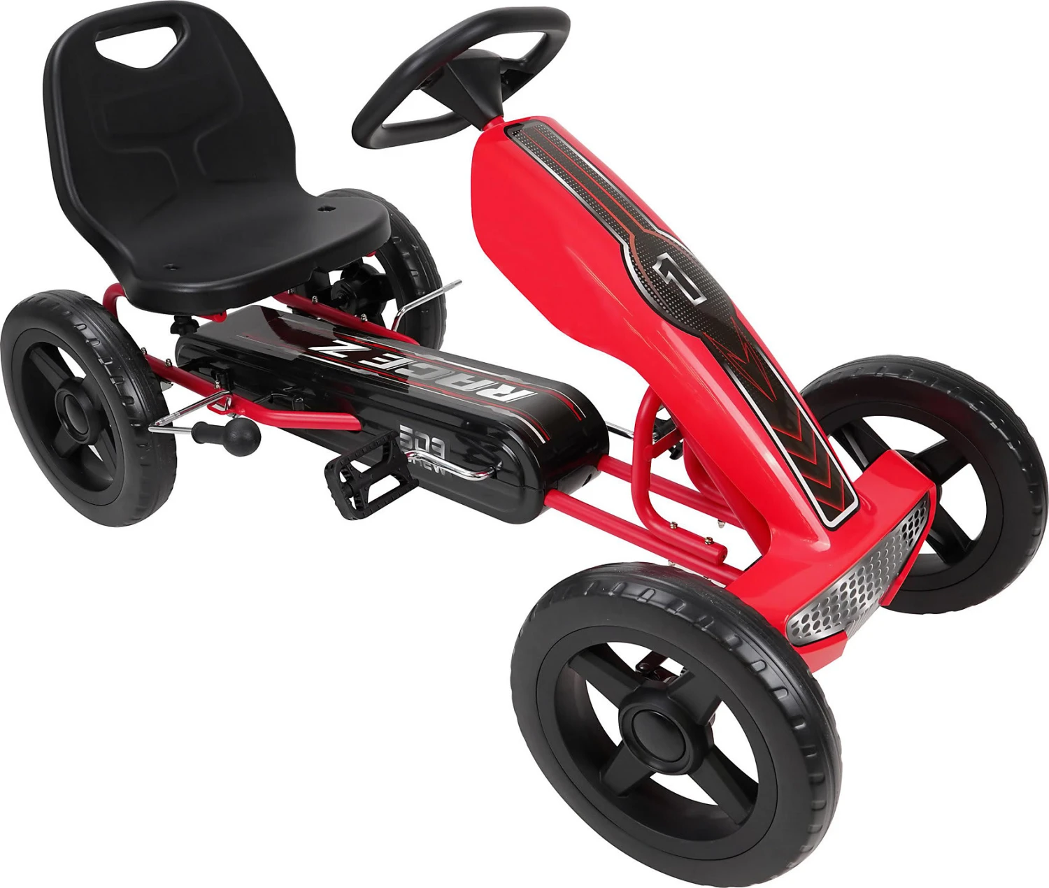 Mit dem Race Z Pedal Go Kart kann die Fahrt losgehen! Dieses Go-Kart-Modell sieht nicht nur cool aus, sondern überzeugt auch mit seinen Funktionen. Der Sitz ist individuell verstellbar, so dass die Rennfahrerinnen und Abenteurer unabhängig von der Größe bequem Platz nehmen können. Eine Handbremse sorgt für eine besonders leichte Handhabung. Ab geht die Post!